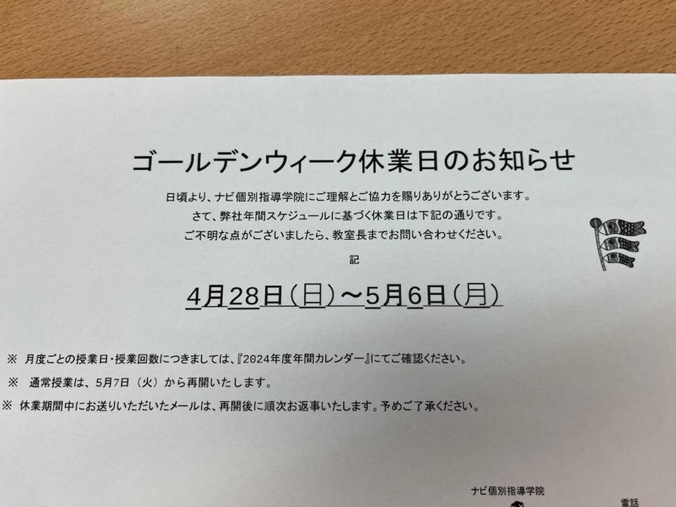 日頃より、ナビ個別指導学院にご理解とご協力を賜りありがとうございます。