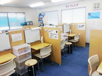 ナビ個別指導学院の授業は、個別の席ごとに設置された自分専用のホワイトボードで解き方や考え方を一緒に確認、それから生徒が問題を解くという「個別授業」スタイルです。