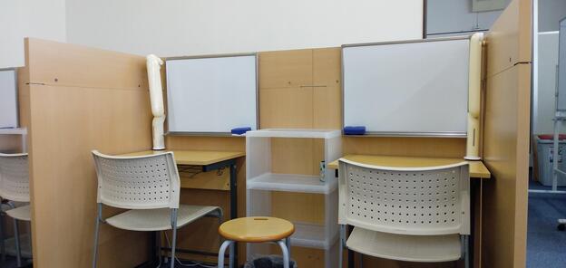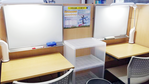 ナビ個別指導学院の授業は、個別の席ごとに設置された自分専用のホワイトボードで解き方や考え方を一緒に確認、それから生徒が問題を解くという「個別授業」スタイルです。