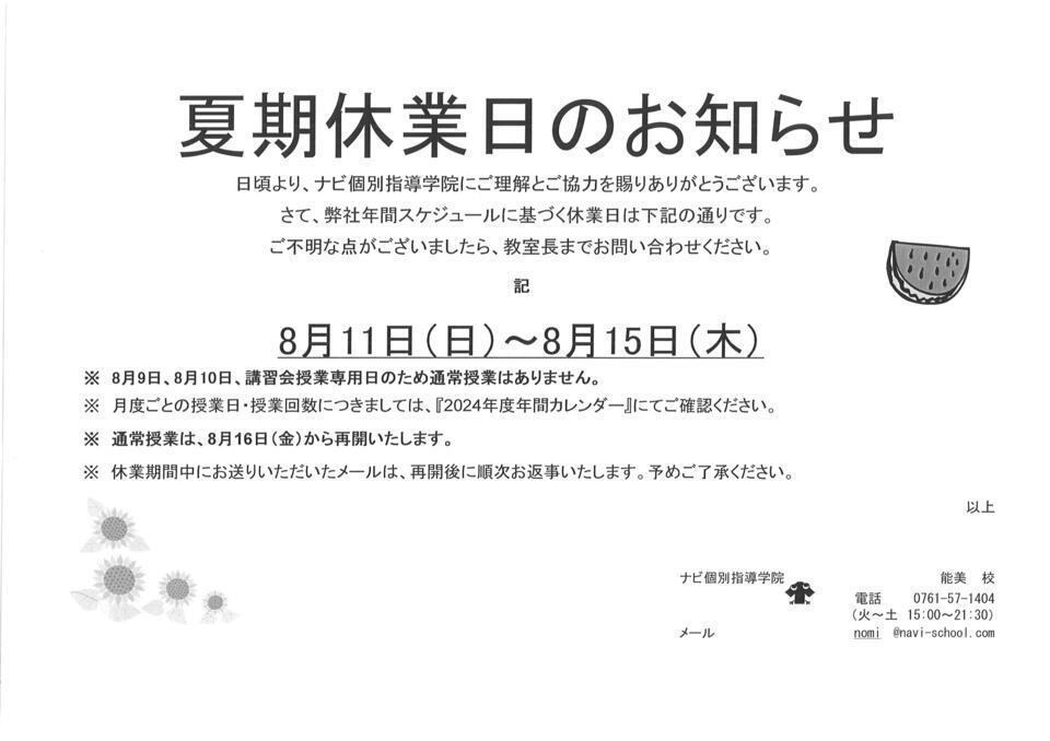 日頃より、ナビ個別指導学院にご理解とご協力を賜りありがとうございます。