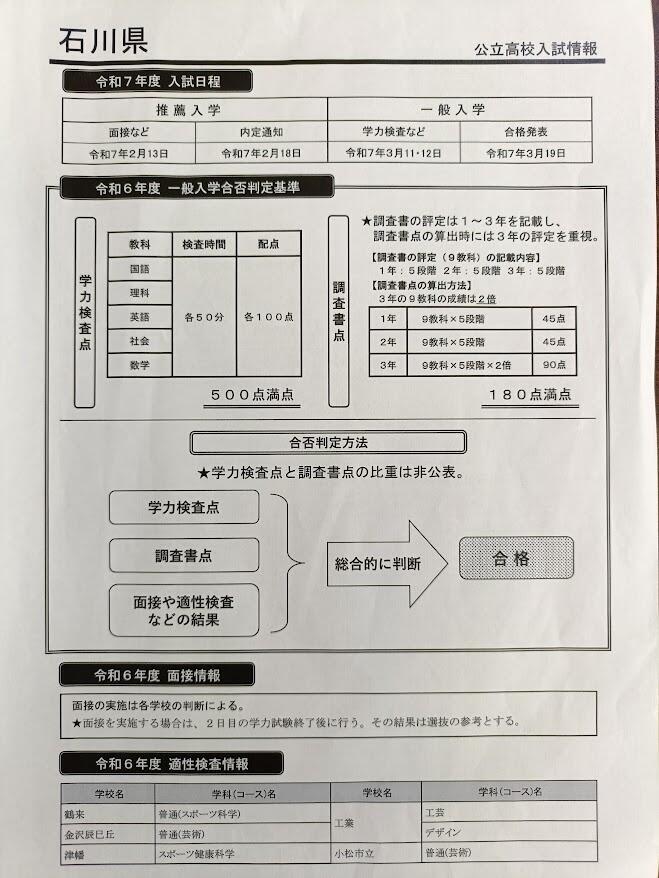 本日は石川県の高校入試の合否基準についてお伝えさせていただきます。