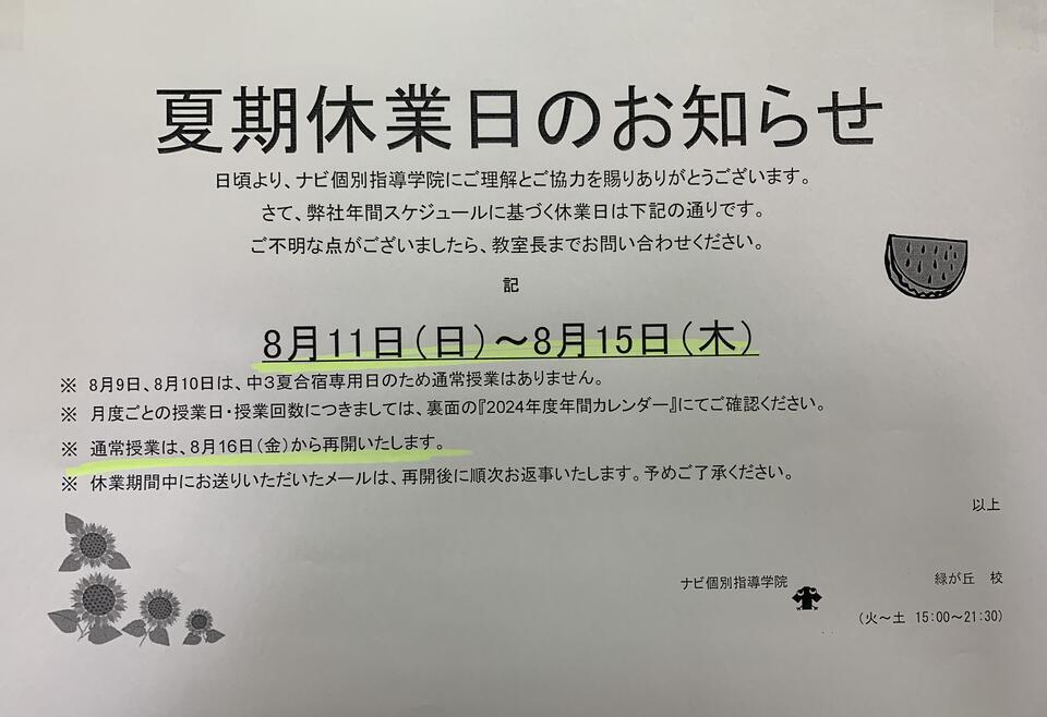 日頃より、ナビ個別指導学院にご理解とご協力を賜りありがとうございます。