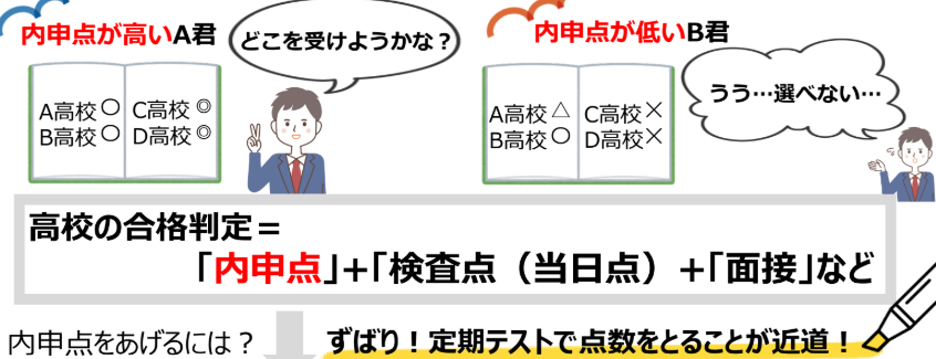 通知表の評価を上げ、希望する高校へ進学できるよう、