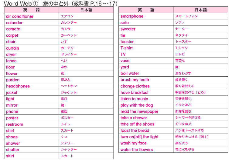②右側の日本語を赤シートで隠し、発音と日本語を口に出しながら答える。