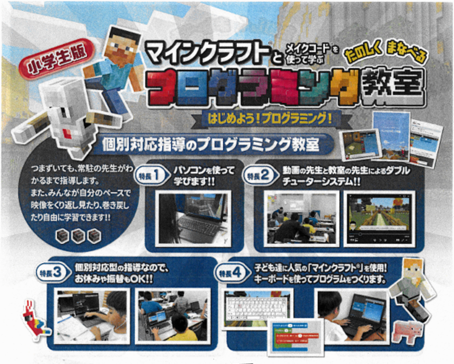 『ナビログ』は大人気ゲーム『マインクラフト』を使ってプログラムの勉強ができる講座です!!