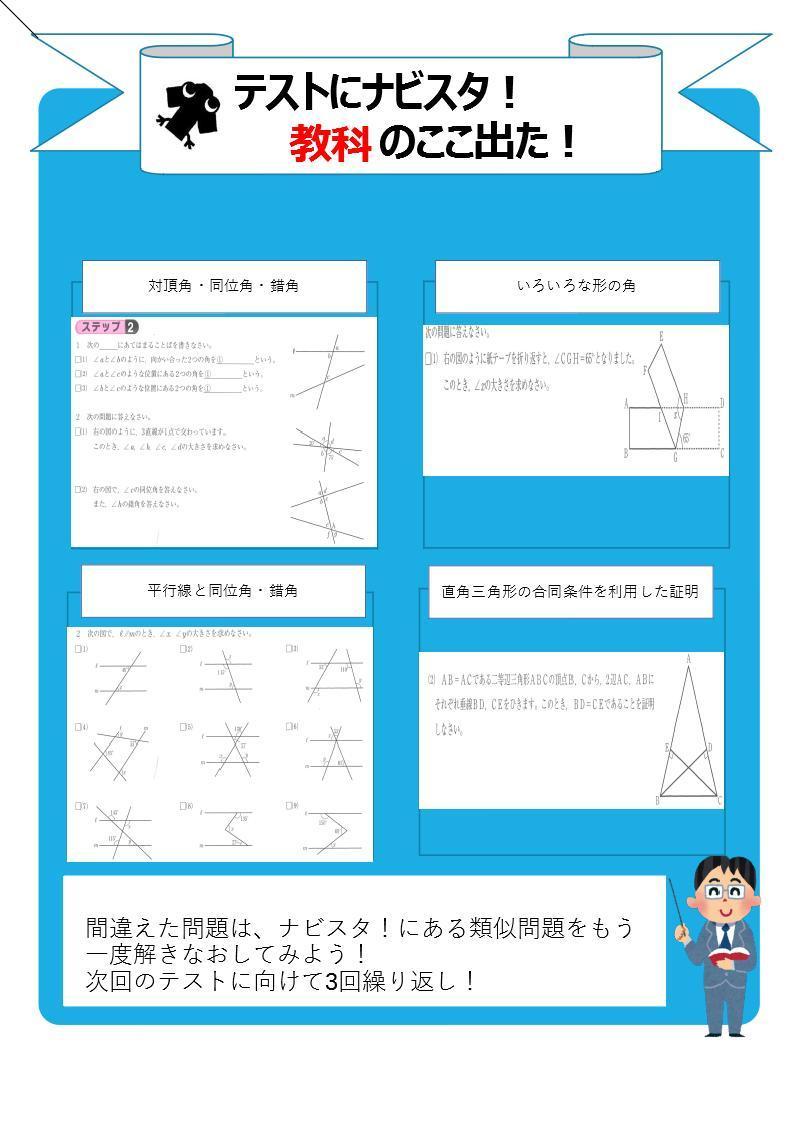 テストが終わってからの学習単元は次学年の最初のテスト範囲になると思いますので聞き逃しがないようにしましょう!