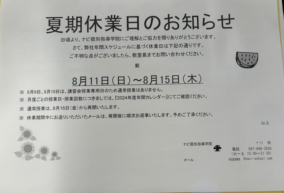 日頃より、ナビ個別指導学院にご理解とご協力を賜りありがとうございます。