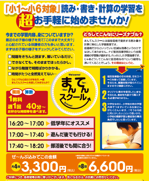 ナビ個別指導学院ではお子様の学年や学習状況に合わせた指導を行っております。