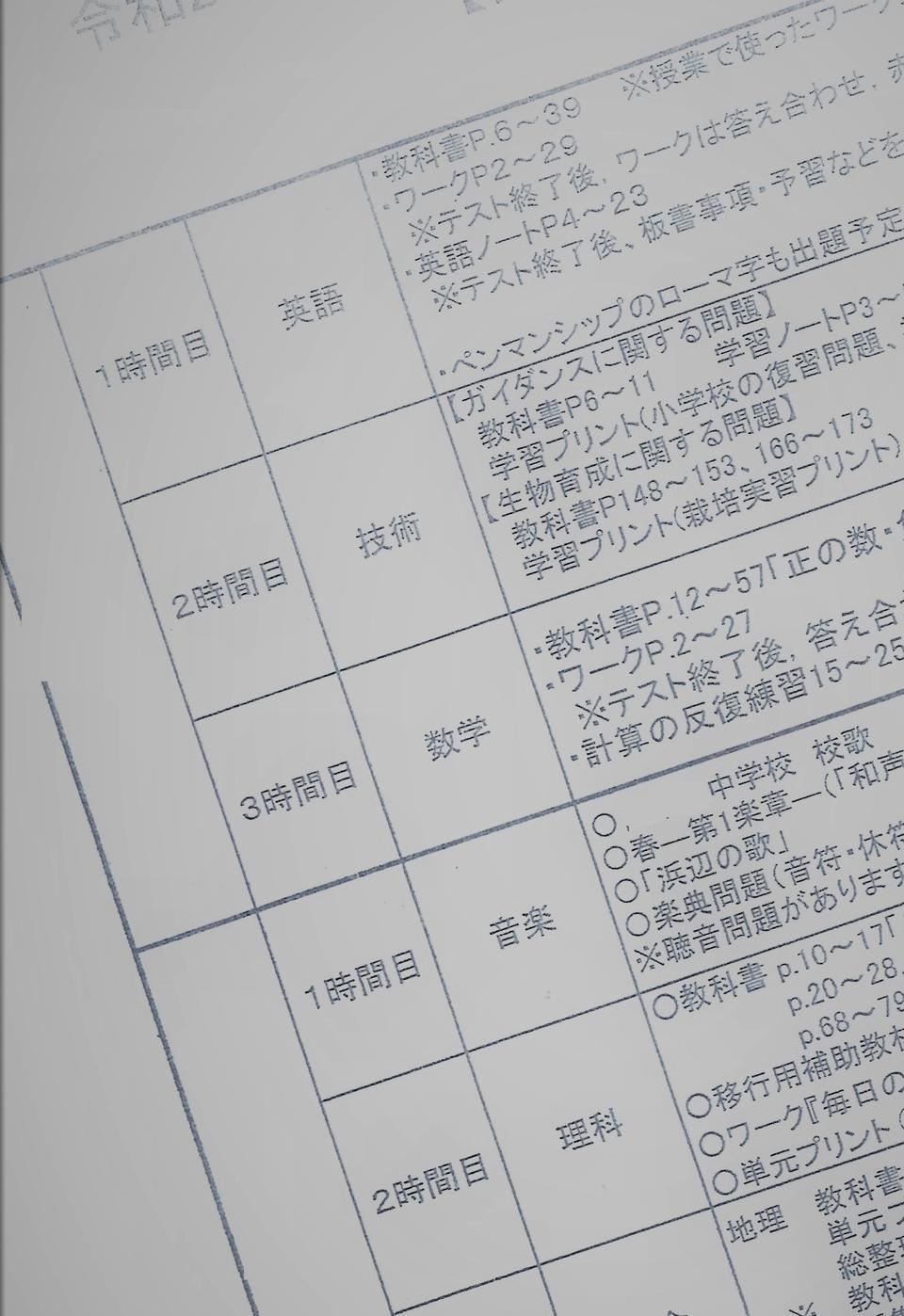 テスト範囲表はただテスト前にやっておかないといけない課題が書かれている紙ではありません。