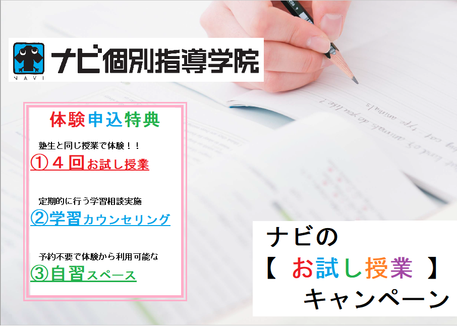 気になる方はナビ個別指導学院出水駅前校にお問い合わせください!