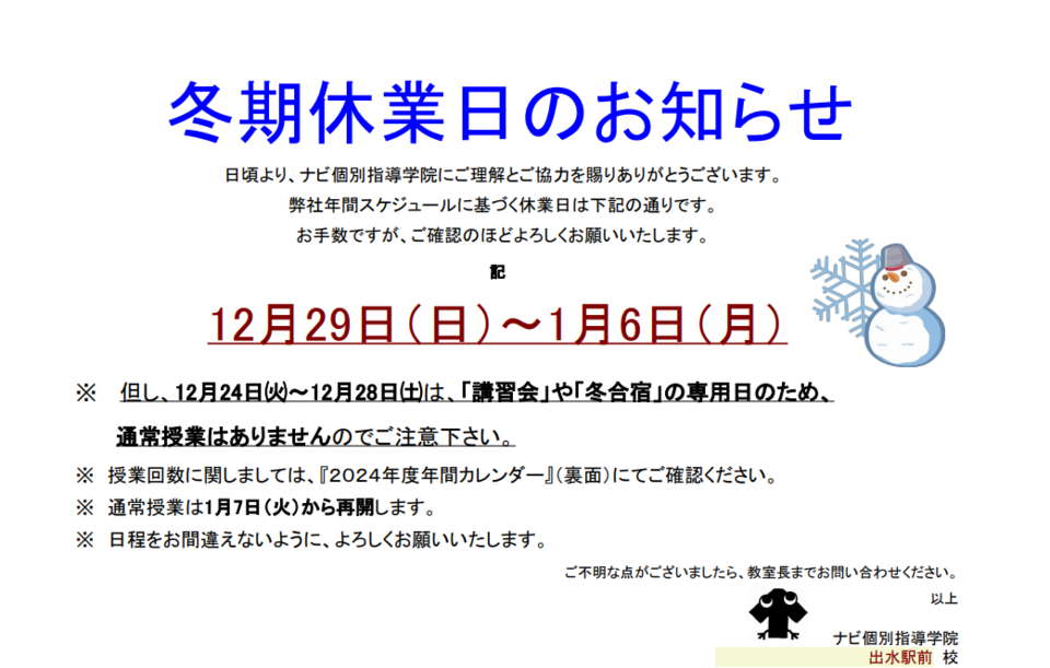 日頃より、ナビ個別指導学院出水駅前校をご利用いただき、