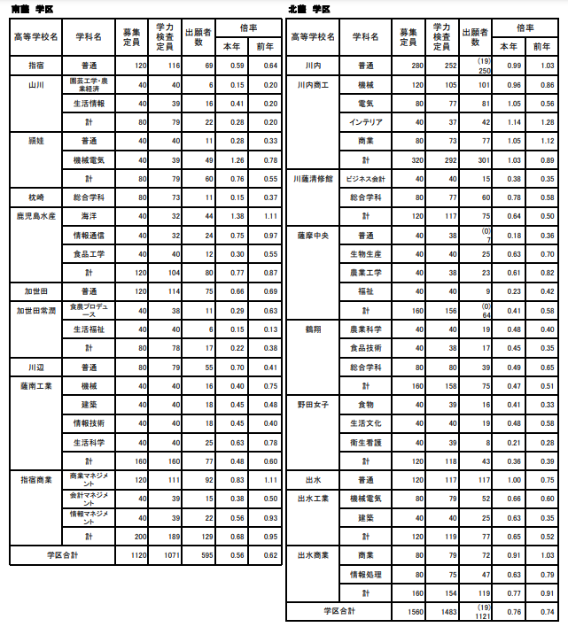 例年、出願倍率が高くなる高校の鶴丸高校は1.44倍。