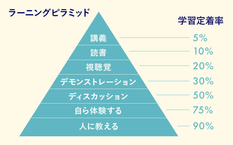 そして能力を伸ばす(理解を深める)には最終段階の「人に教える」が最も効果的です。