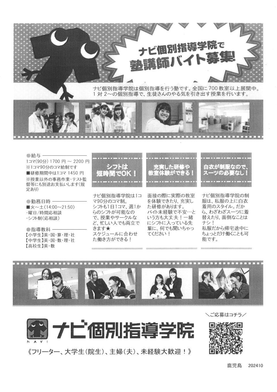 さて、ナビ鹿児島中央校では来年度に向けて、講師の先生を募集しております!