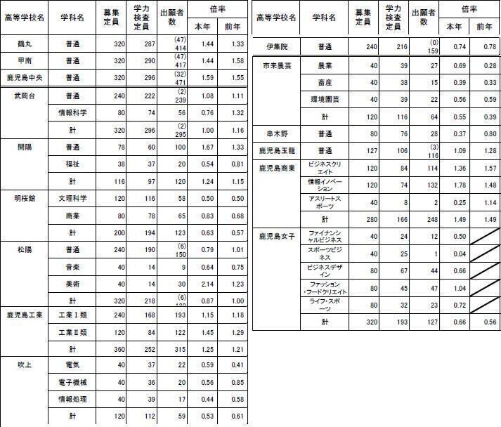 例年、出願倍率が高くなる高校の鶴丸高校は1.44倍。