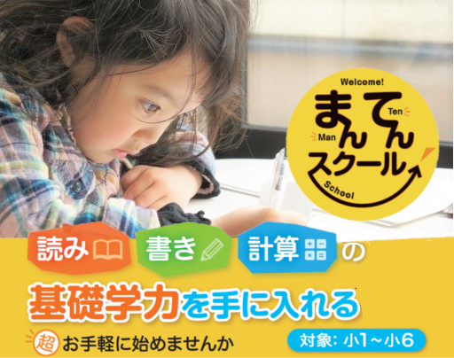 【まんてんスクール】とは『読み・書き・計算の基礎学力を鍛える』講座です。