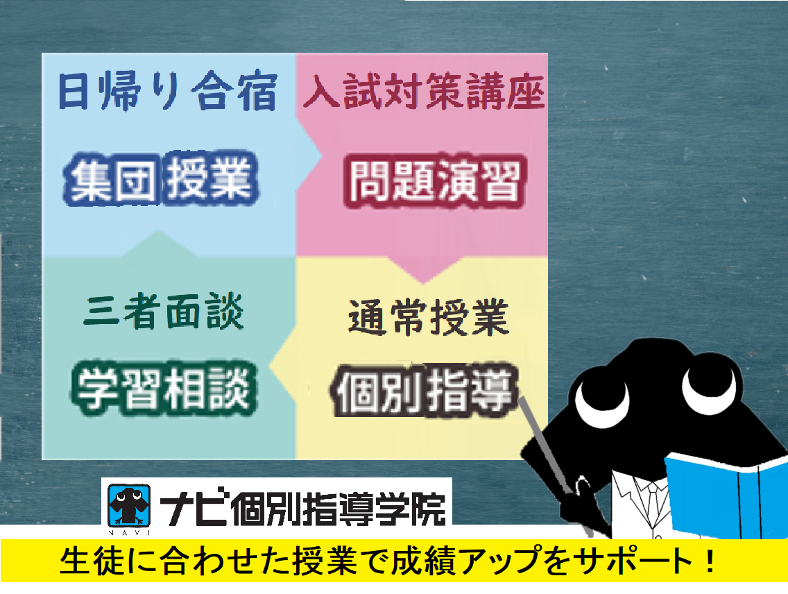 ナビ個別指導学院ではお子様の学年や学習状況に合わせた指導を行っております。
