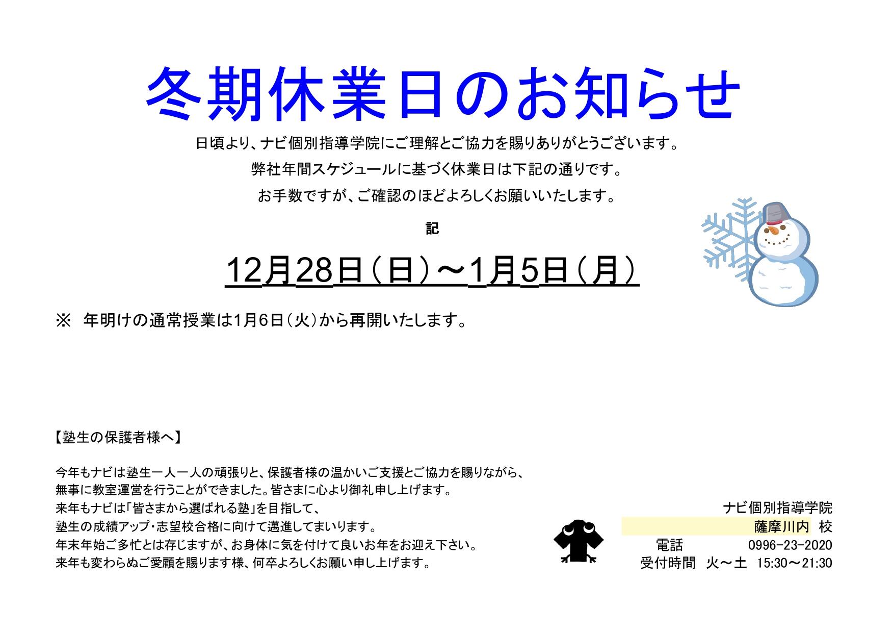 《ナビの冬期休業日》 12月28日㈰~1月5日㈪