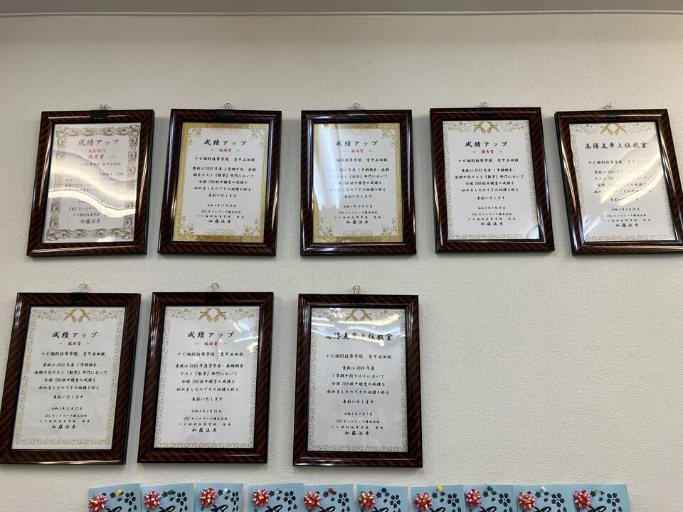 1学期中間テストの結果で、全国700教室の中で「高得点率上位教室」として表彰されました!