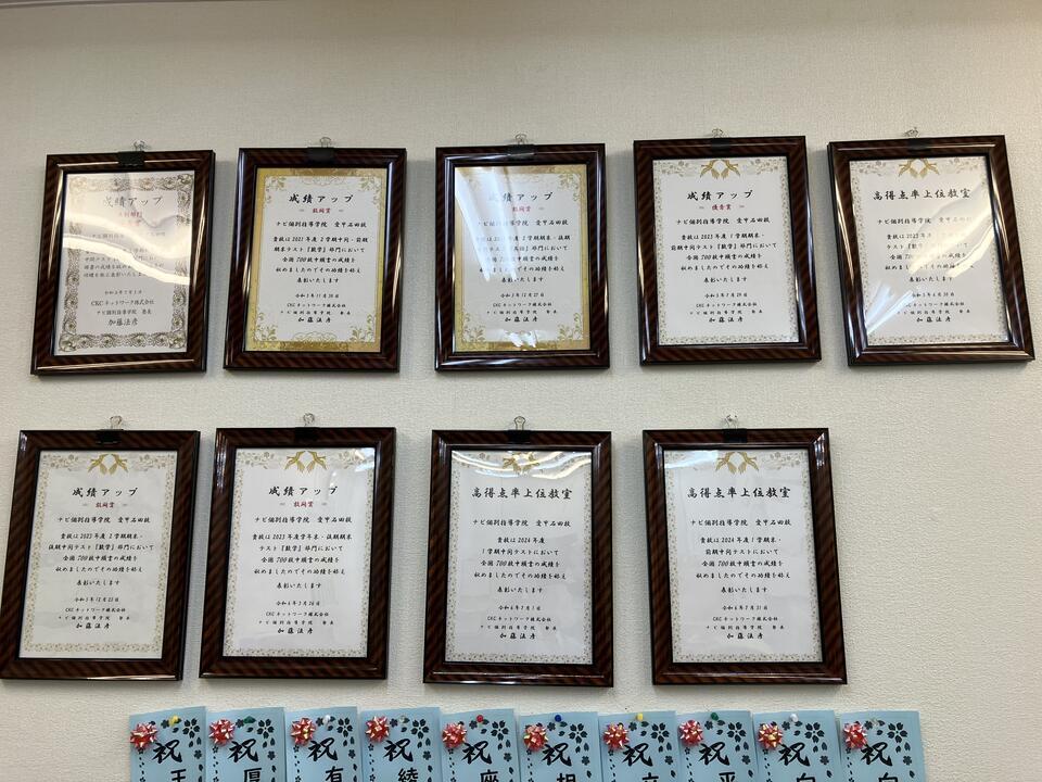 1学期末・前期中間テストの結果で「高得点率上位教室」として表彰状をいただきました。