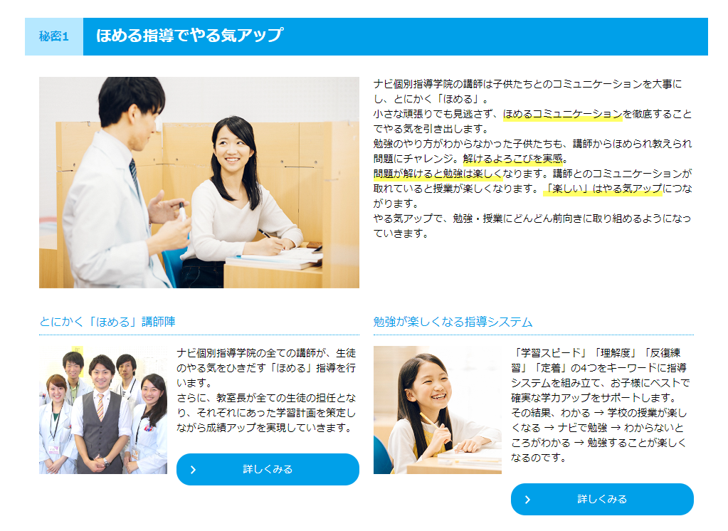 ナビ個別指導学院愛甲石田校では、生徒さんの前向きな姿勢を作るために、「ほめる授業」「授業前の何気ない会話」を行っています。