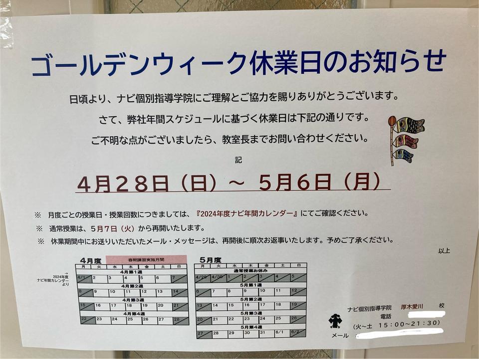 日頃より、ナビ個別指導学院にご理解とご協力を賜りありがとうございます。