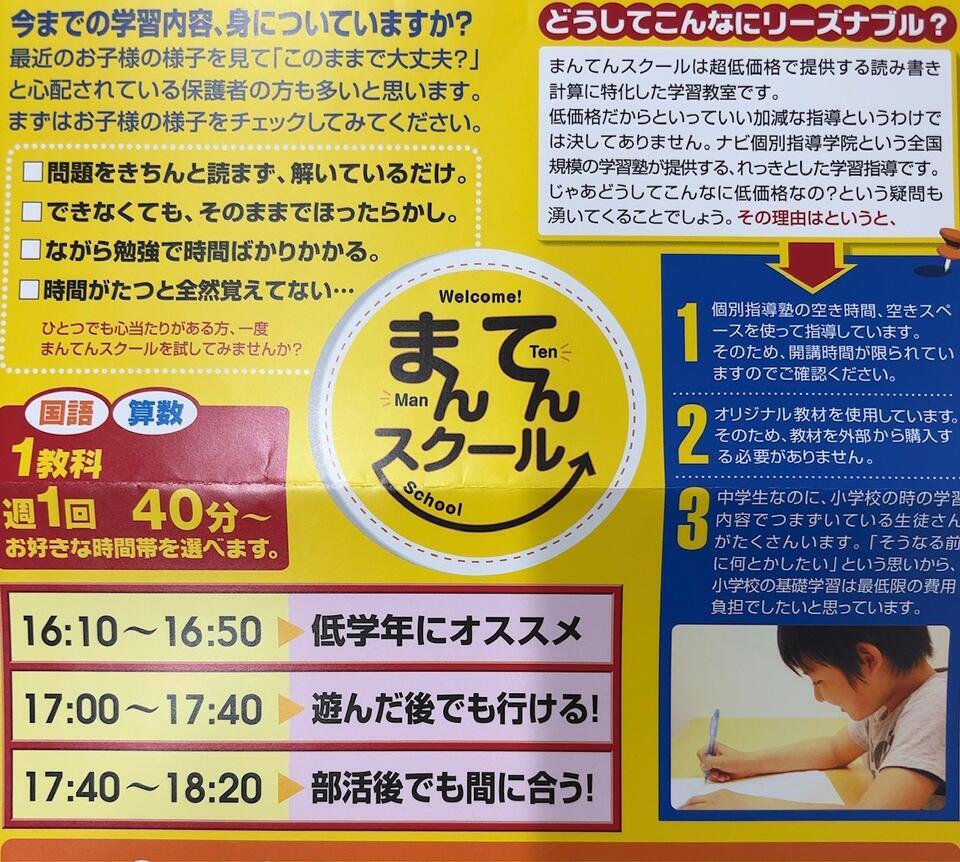 ナビでは、通常のコースにプラスして、【まんてんスクール】で