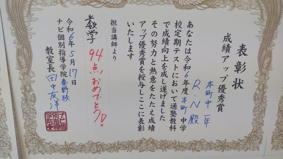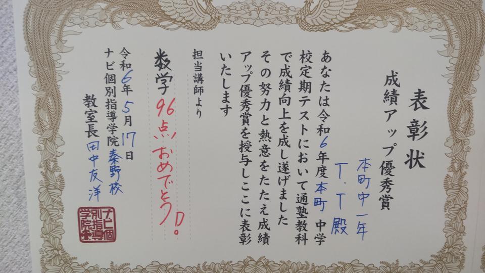 ナビ個別指導学院秦野校では、1学期中間テスト後の