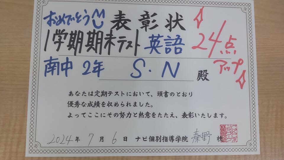おめでとうございます!!次の2学期中間テストに向けても良い準備をして臨んでいきましょう!!今は、たくさんのお客さまから1学期期末テスト後の体験授業もお問い合わせいただいております。ありがとうございます!みなさまとお会いできることを楽しみにしております。