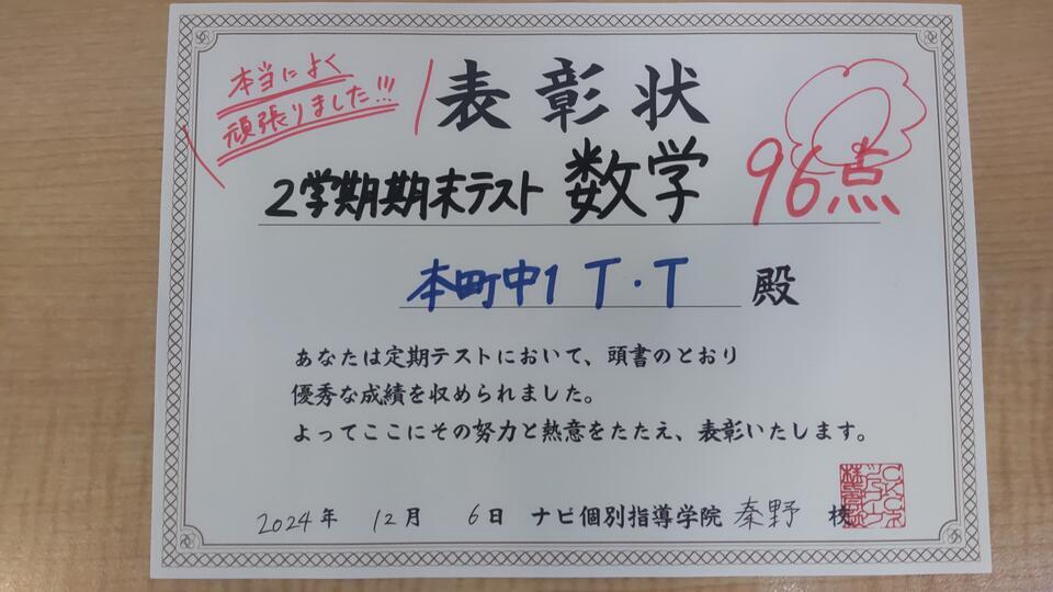 期末テストの嬉しいご報告をどんどん挙げて参ります。