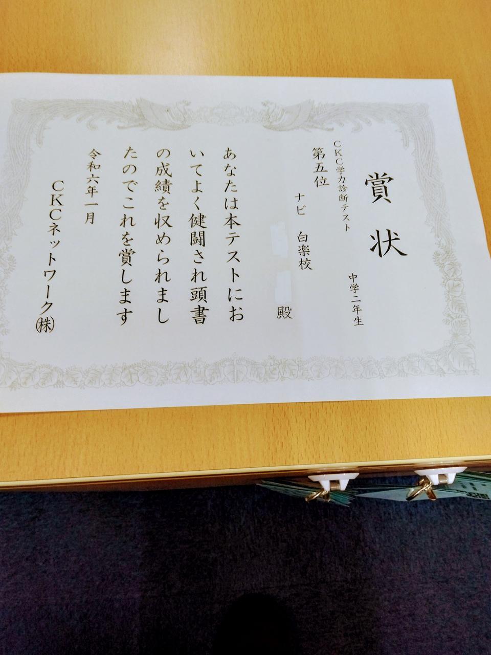 その中で何と、白楽校の生徒さんで全国上位者が誕生しました!