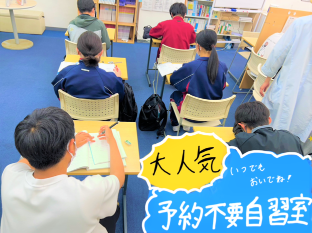 定期テスト対策に、学校の宿題を取り組む場としても。わからないところは質問もできて、やる気が続きます。