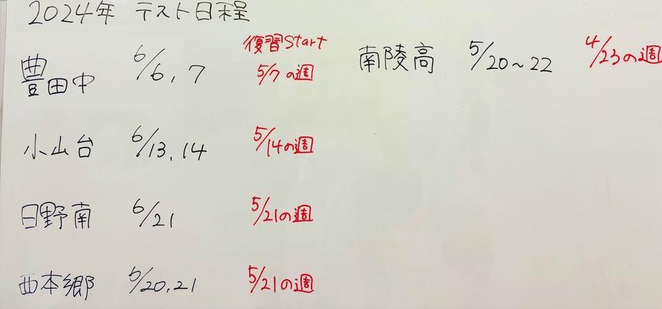 よくよく見ると、豊田中はゴールデンウィーク明け、
