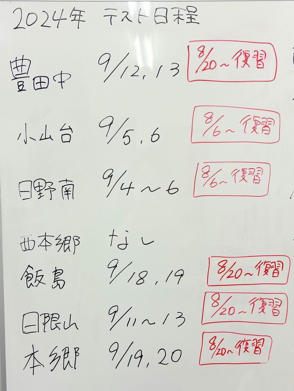 西本郷中学校の子に聞くと、開けてすぐにテストを