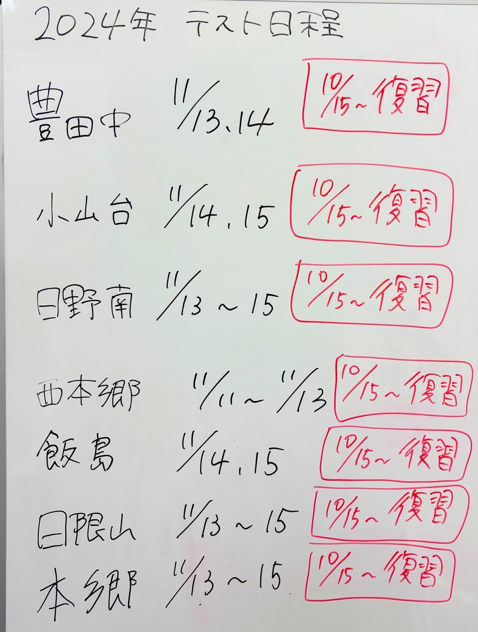 次回までのテスト日程が1ヶ月ほどしかない、