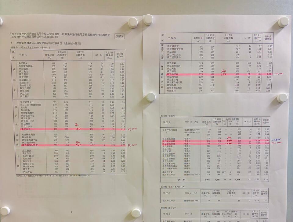 さて、本日神奈川県公立高校の確定倍率が発表されました。