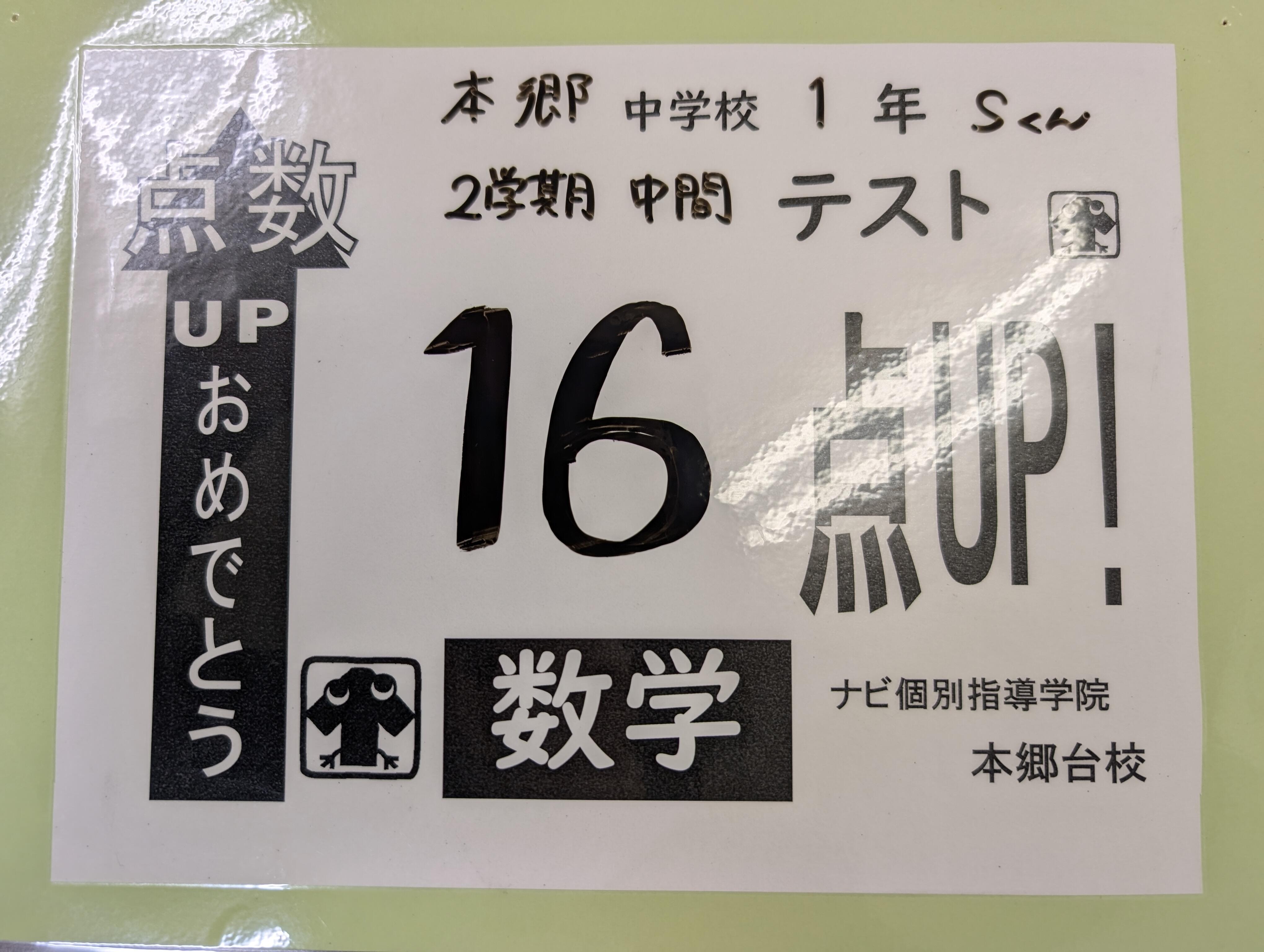 本日は、今回のテストにおける、成績アップ事例の成績アップした生徒さんのご紹介です!