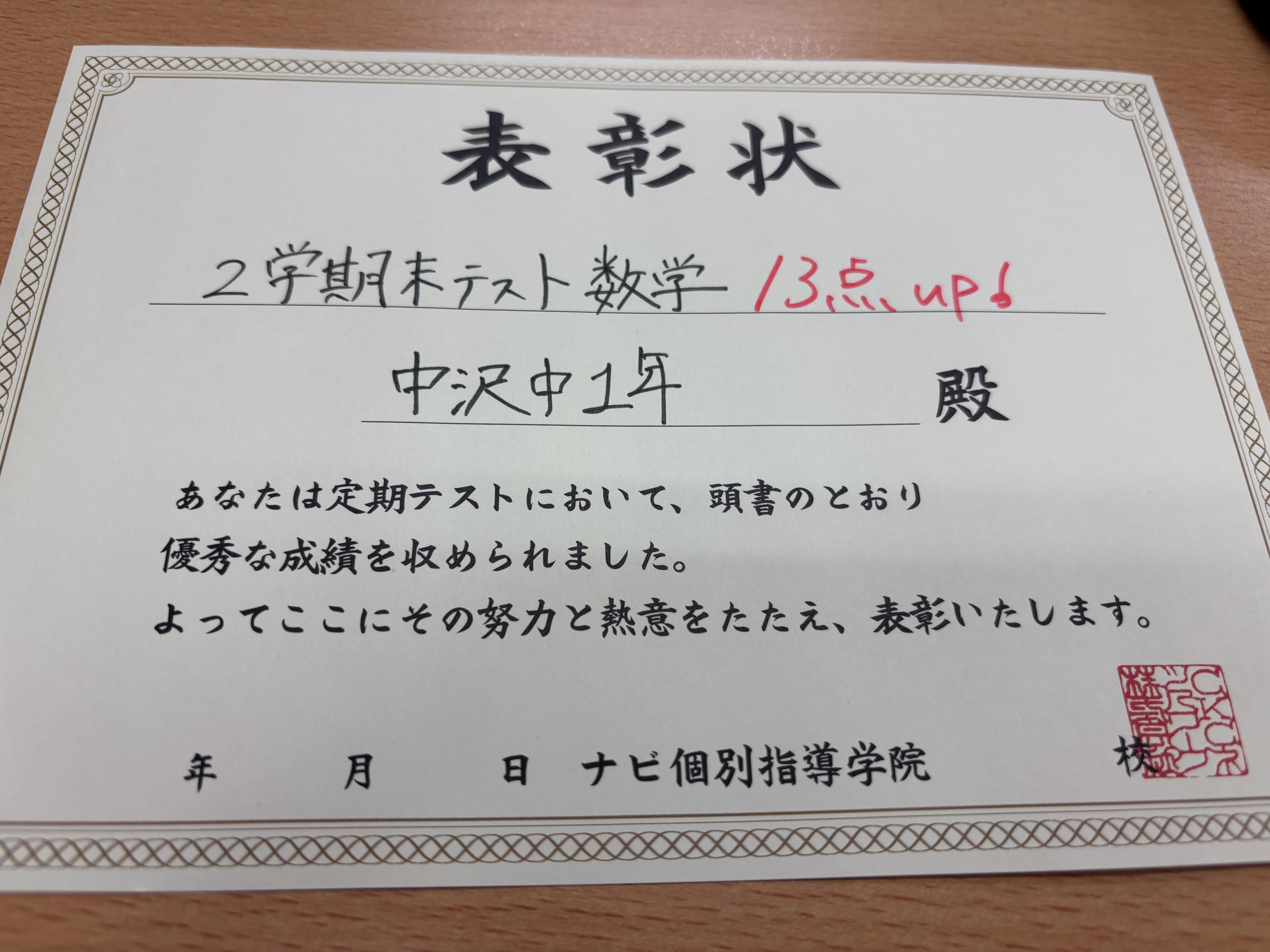 先日行われた2学期期末テストの成績アップについてご紹介いたします。