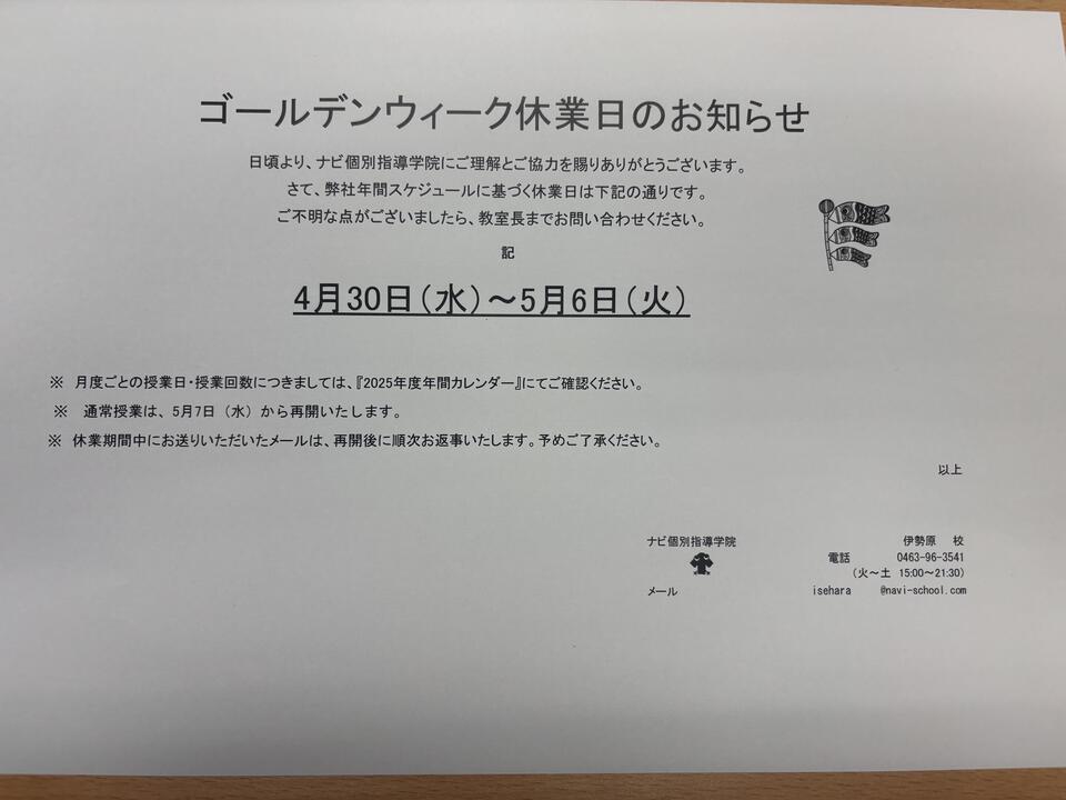 【GW休業のお知らせ】
