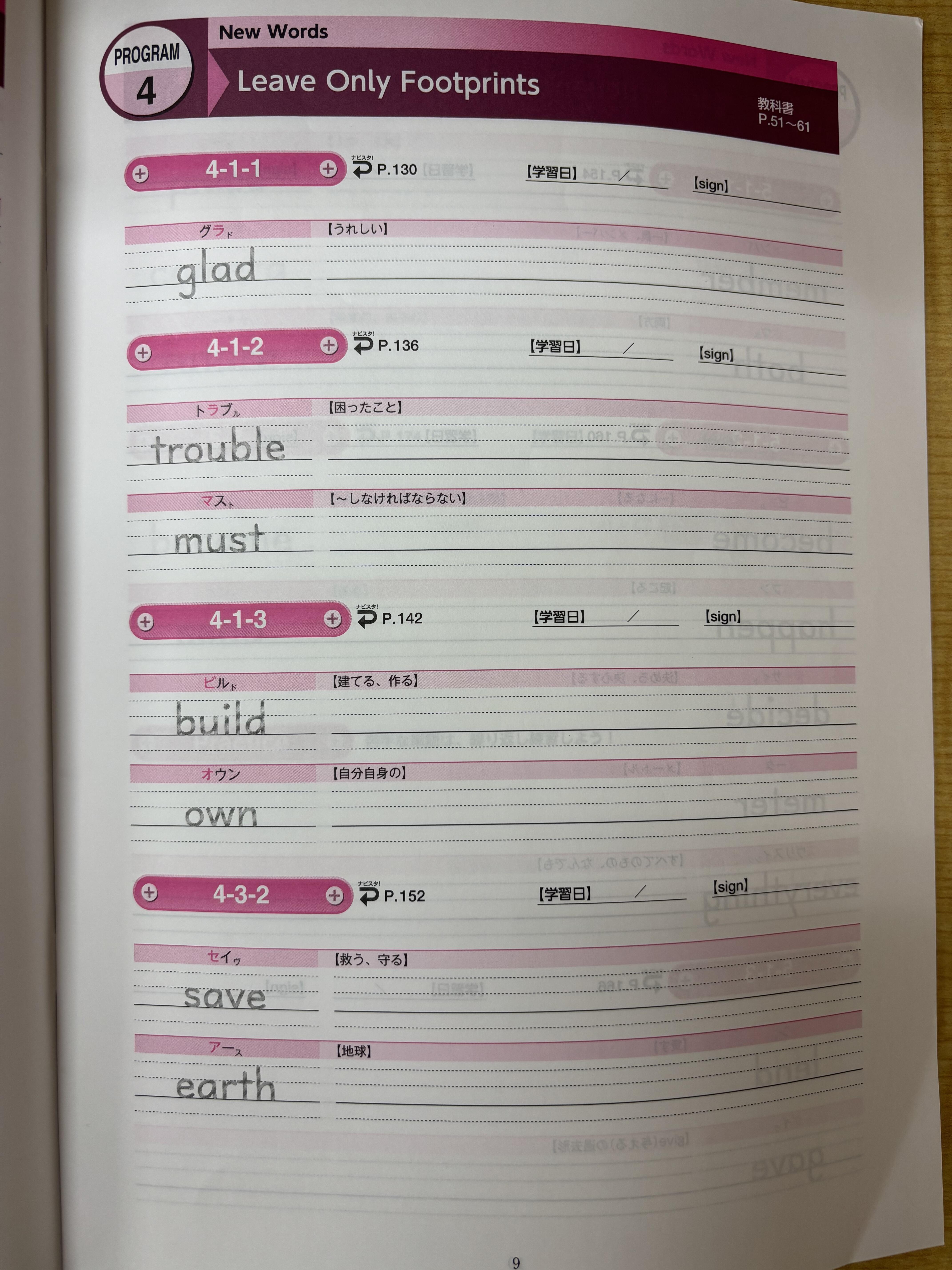 今年度から採用されたこのテキストで、以前より英単語が書けるようになったという子も増えてきました。