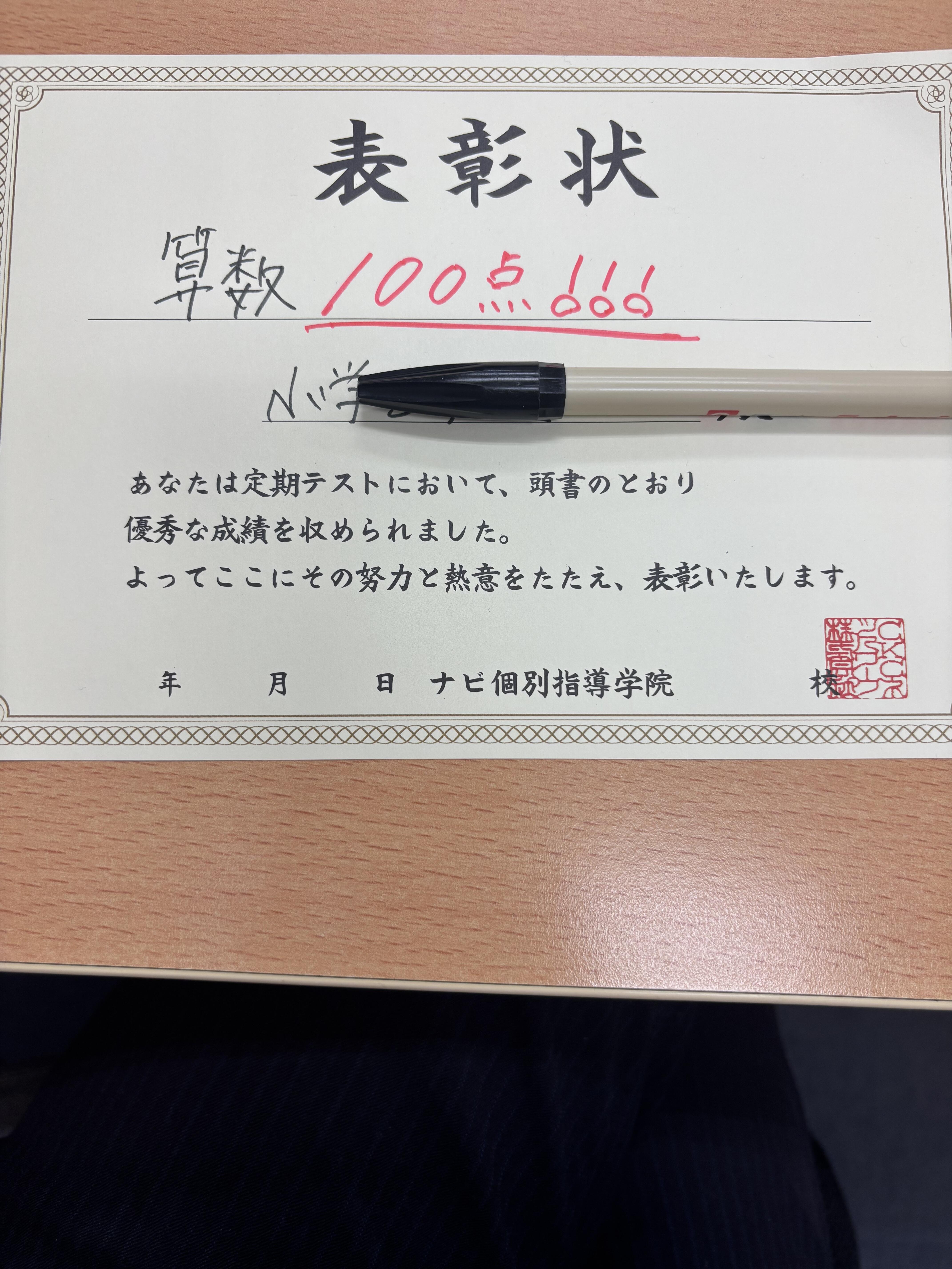 算数が不安で入塾してくれた小学生の生徒さんが、算数で100点を取ってきてくれました!!!