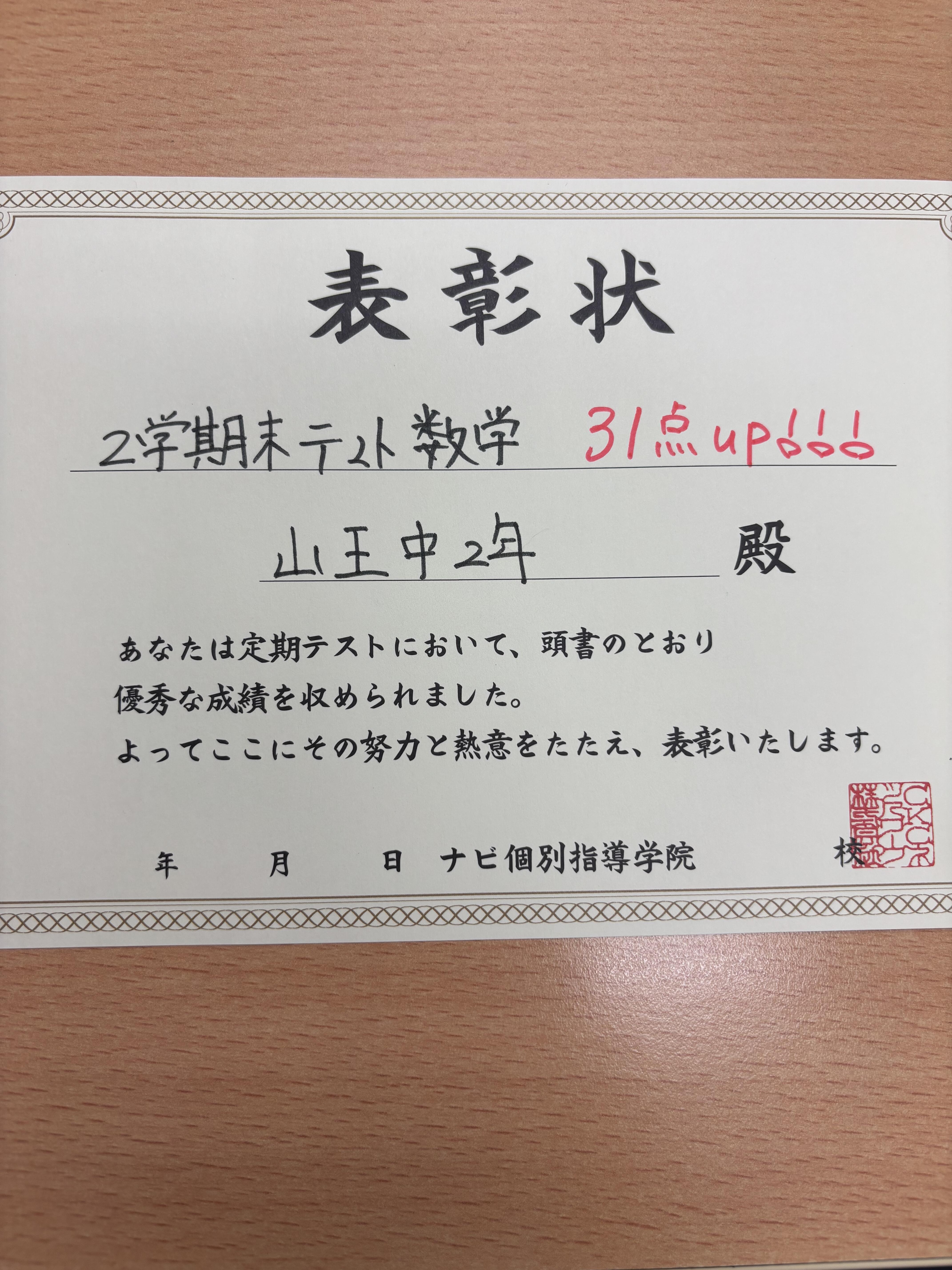 中学2年生ということでこれからが大切な時期ですので、次の学年末テストのさらなる飛躍も応援しております!!