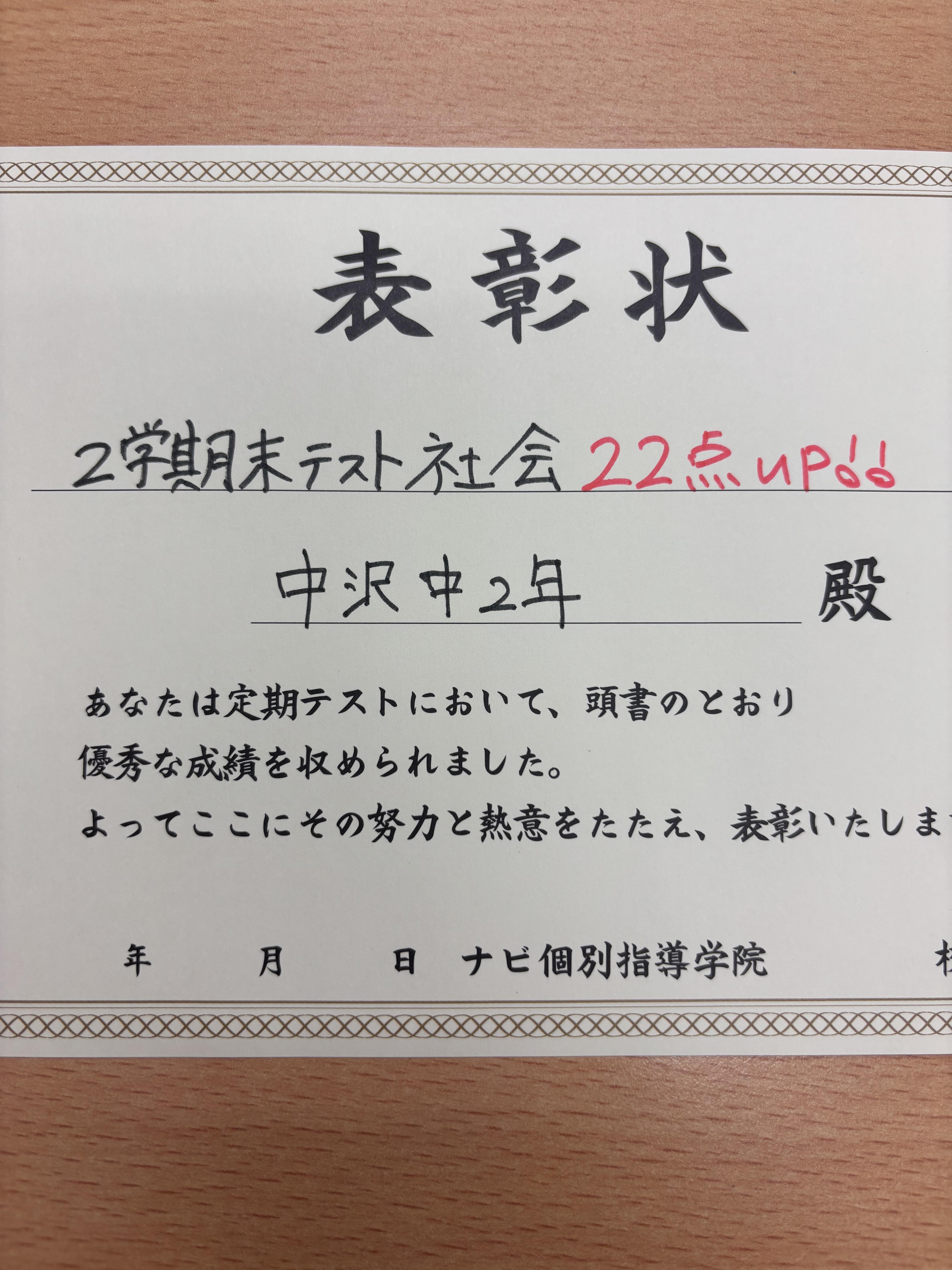 実際に2学期期末テストでは見事社会の点数を22点と大きく上げることができました。
