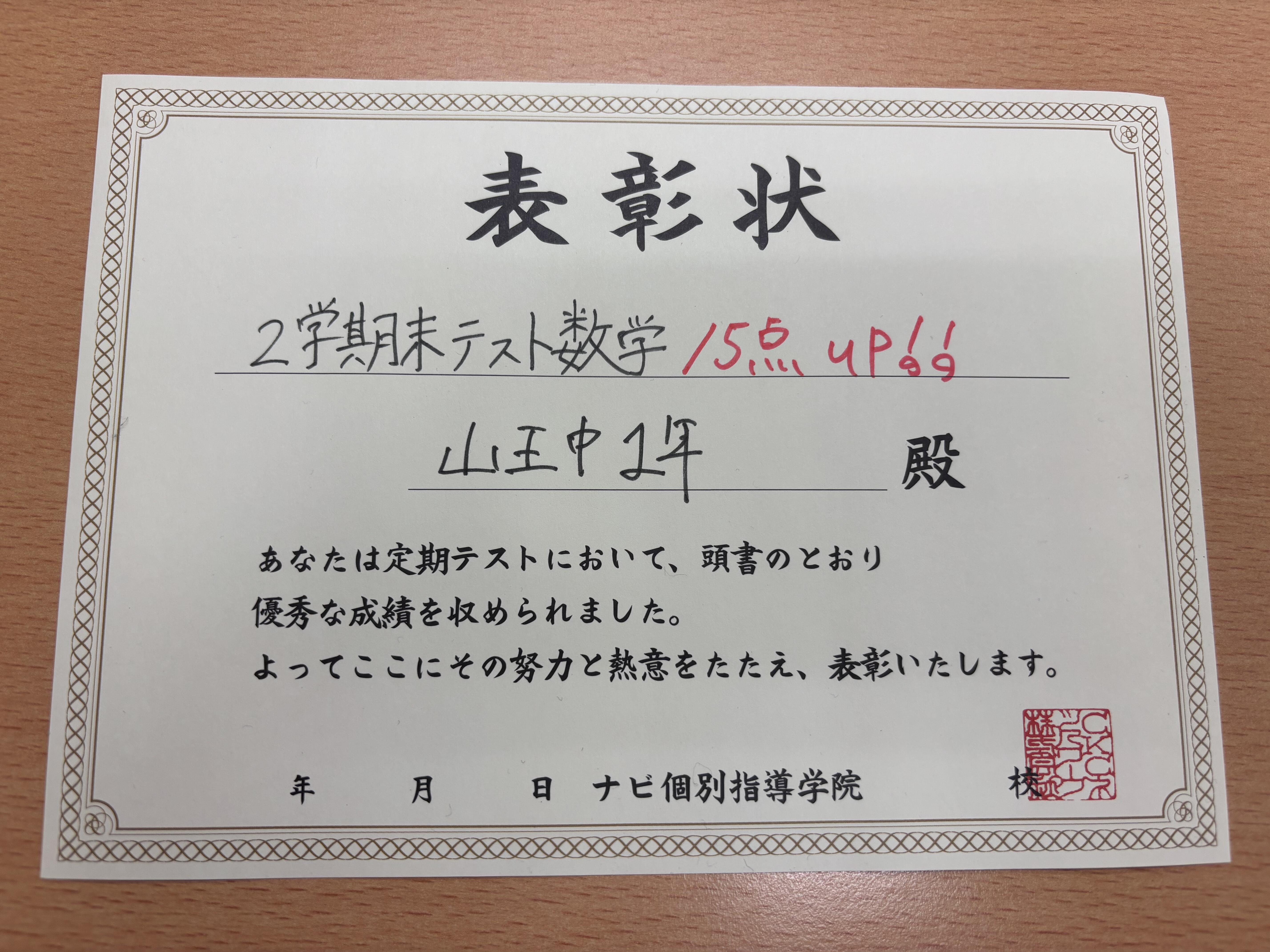 前回のテストではやや苦戦してしまった数学ですが、見事点数アップを達成しました。