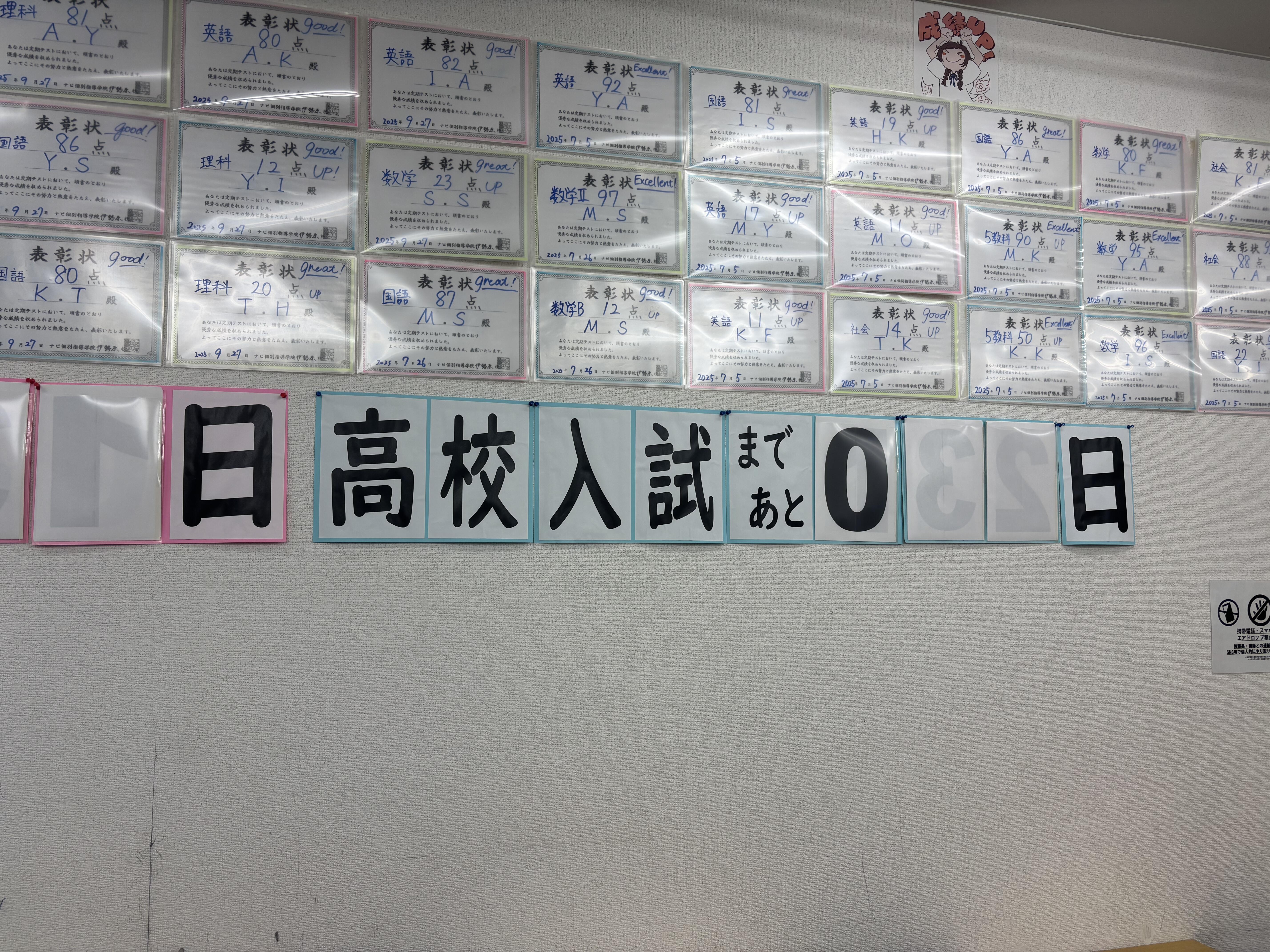 最初は勉強のスイッチがなかなか入らなかった子が受験が近付くにつれどんどんと勉強時間が増え、質問が増え、成績が上がっていく姿を見ることができてとても感動しています。