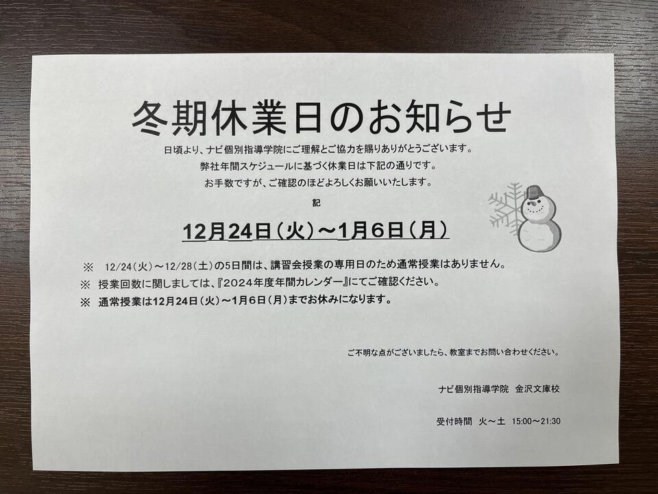 12月29日(日)~1月6日(月)は冬期休業のため、お休みとなります。
