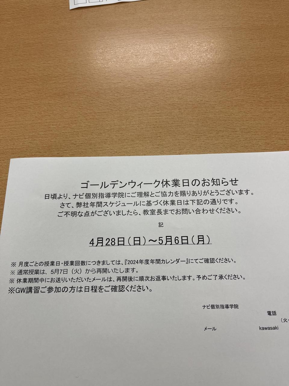 お休みの期間も、お勉強の手を止めないようにしてくださいね!