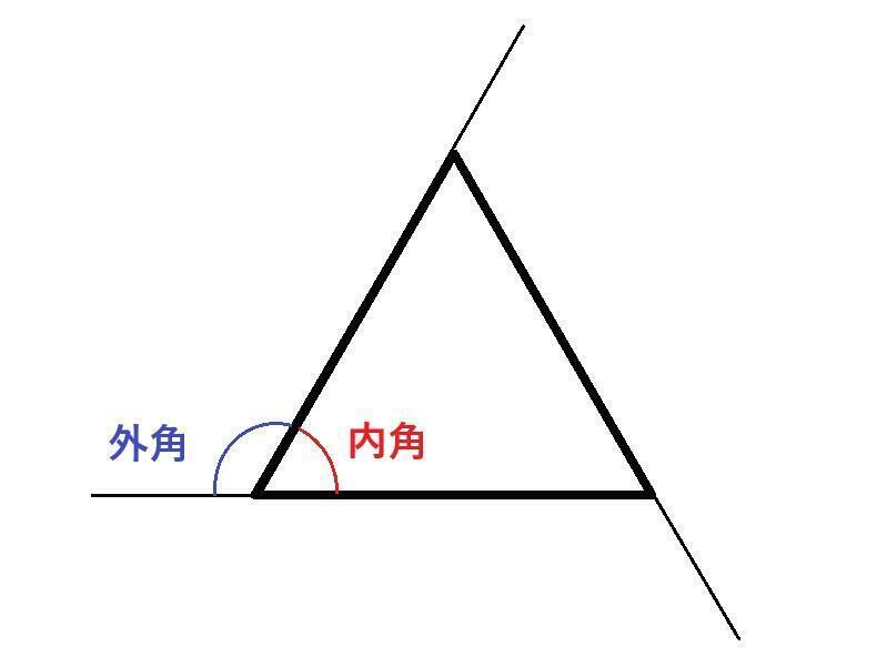 内角は、画像の赤の角の部分、外角は青の部分です。
