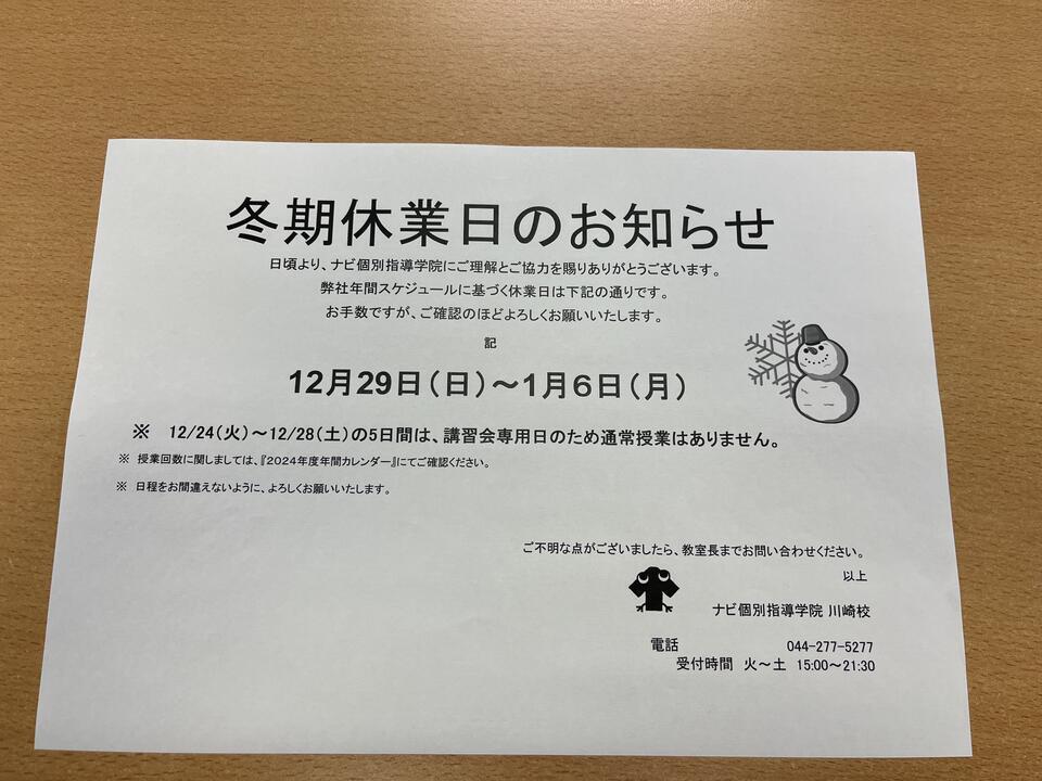 【冬期休業のお知らせ】いつもナビ個別指導学院の運営に、ご理解ご支援いただきありがとうございます。