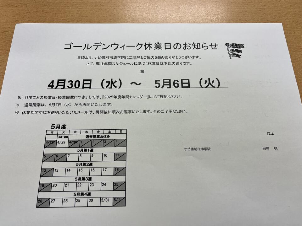 日頃より、ナビ個別指導学院にご理解とご協力を賜りありがとうございます。